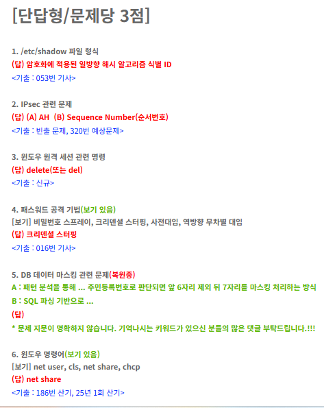 | '25.2차 보안기사 실기 기출문제 (1) | 2025.07.26 |